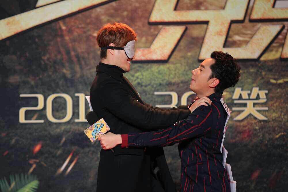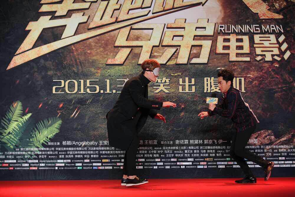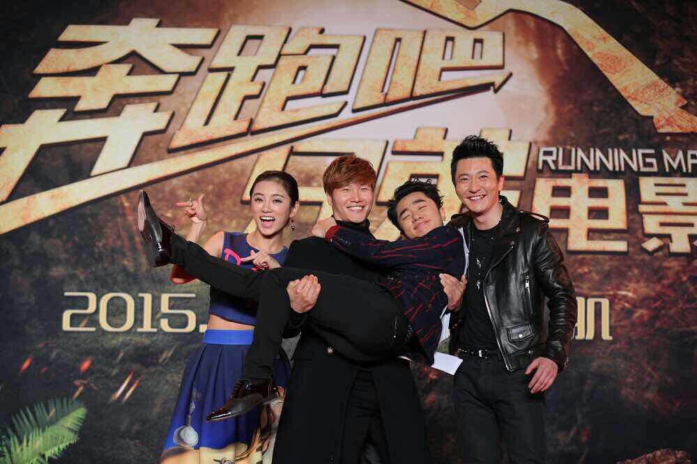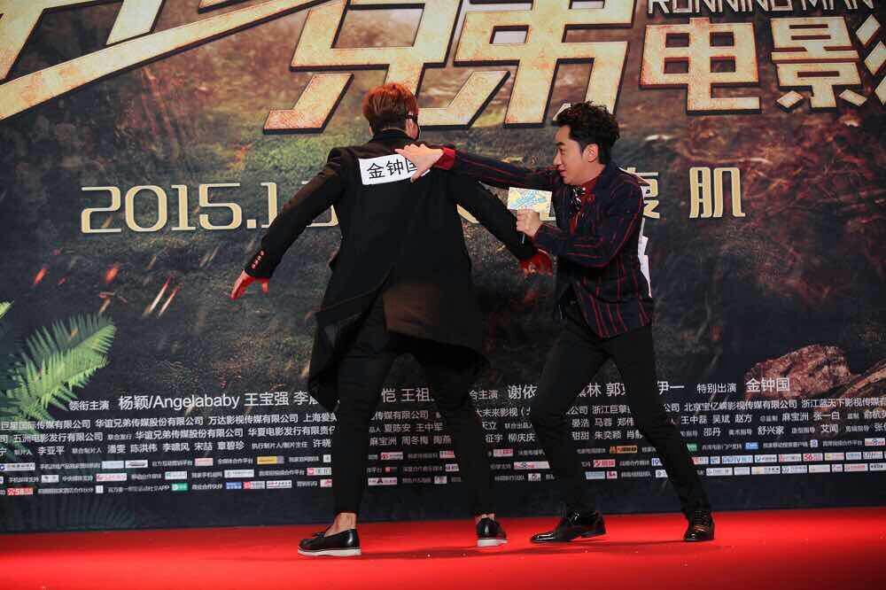 大電影“奔跑吧,兄弟”宣傳活動現(xiàn)場,金鐘國和王祖藍。(北京一路領(lǐng)先汽車租賃公司)圖