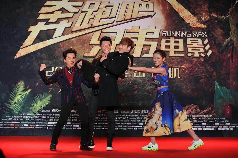 大電影“奔跑吧,兄弟”宣傳活動現(xiàn)場,鄭凱海報。(北京一路領(lǐng)先汽車租賃公司)圖